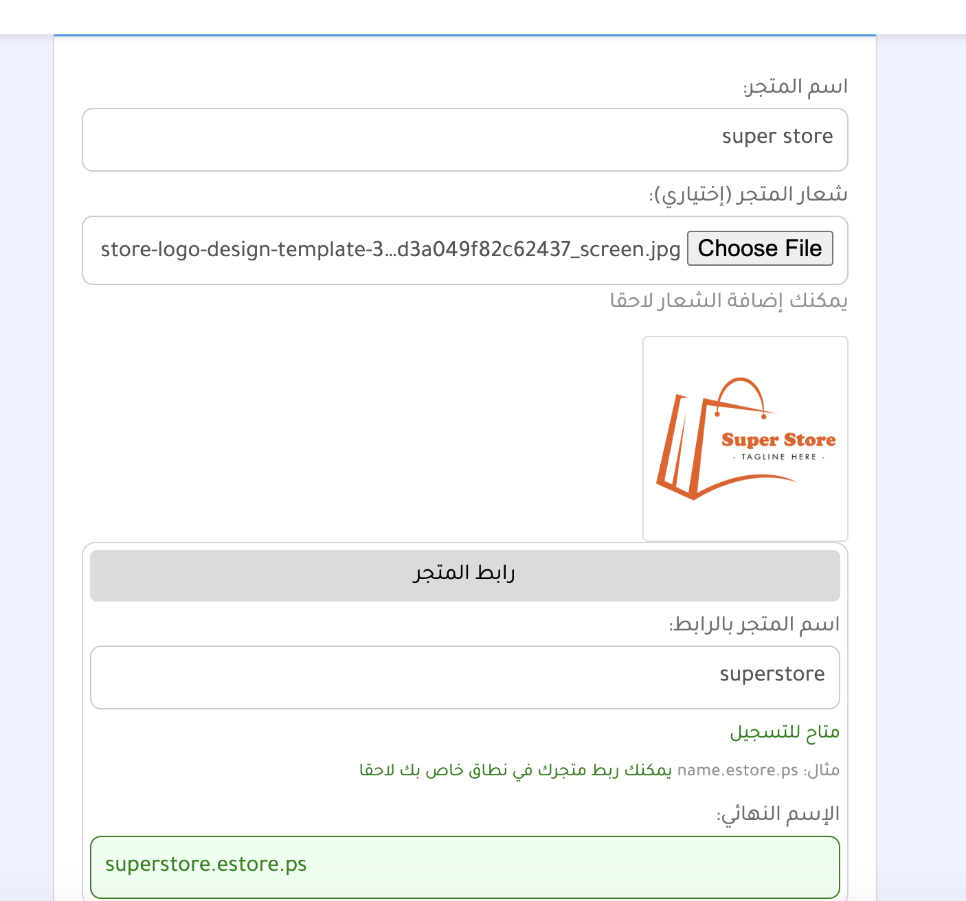 هذا رابط المتجر الذي قمنا بإنشائه يمكنك الإطلاع عليه superstore.estore.ps